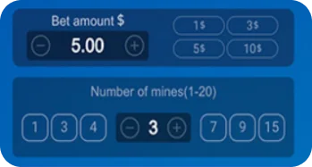 Place a bet and choose the number of mines hidden on the grid. The more mines, the faster your winnings increase.
